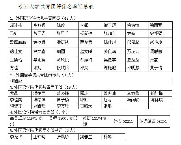 根据长大团函〔2022〕7号《关于开展2021年度共青团先进集体和个人评选工作的通知》文件要求,经团支部和学生个人申报、学院评审评议通过,报学院党委审查同意,拟评选出李龙飞等67名同学为先进个人、商英卓越11901支部等5个团支部为先进集体,现予以公示,具体名单见汇总表。