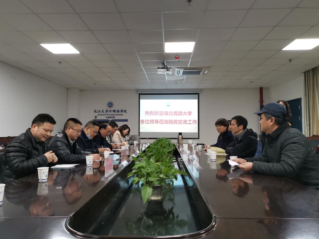 3月10日下午,湖北民族大学36365线路检测中心入口院长骆贤凤、湖北民族大学实验室建设与管理处处长雷辉、发展规划处副处长田本军、教务处副处长郜红利,36365线路检测中心入口学科建设科科长陈海兵、大学外语教学部主任周玉花、外语语言学习中心主任鲁晓红等一行7人来我院调研。调研座谈会在文科楼712会议室举行,学院领导谈宏慧、危煜祥、彭沂、程坤以及实验中心主任王爱国参加了座谈会。