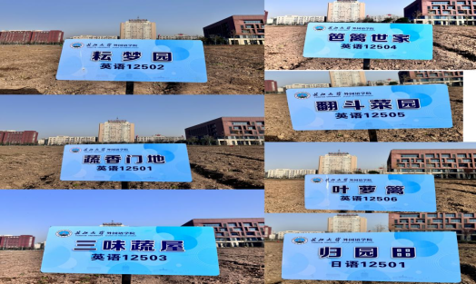 方案落地之余,学院更推出“菜园创意命名”活动,鼓励各班为专属“责任田”取个性化名称,让田间课堂多一份趣味与归属感。学院统一为各班定制了专属名牌,标注班级、菜园名称,由同学们亲手插在“责任田”地头,成为田间一道独特的风景线。